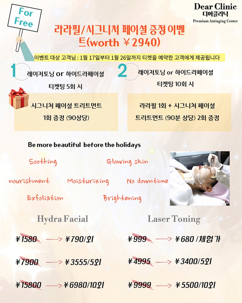 하이드라페이셜과 레이저 토닝이 2월부터 프로모션가가 인상될 예정입니다.
