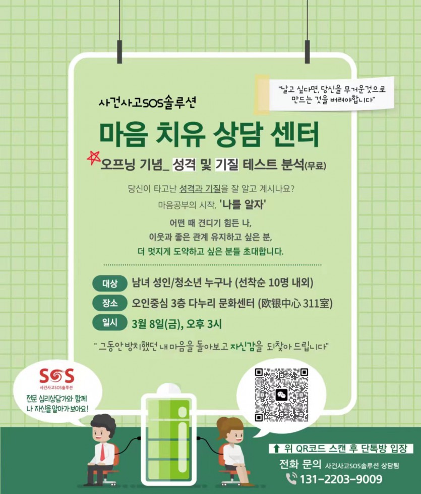 <마음치유상담센터> 오프닝 행사 페이지 정보 작성자 한국맘 댓글 0건 조회 2,340회 작성일 24-03-02 14:20 목록 본문 페이스북 공유 트위터 공유 추천0 댓글 0 댓글목록 등록된 댓글이 없습니다.