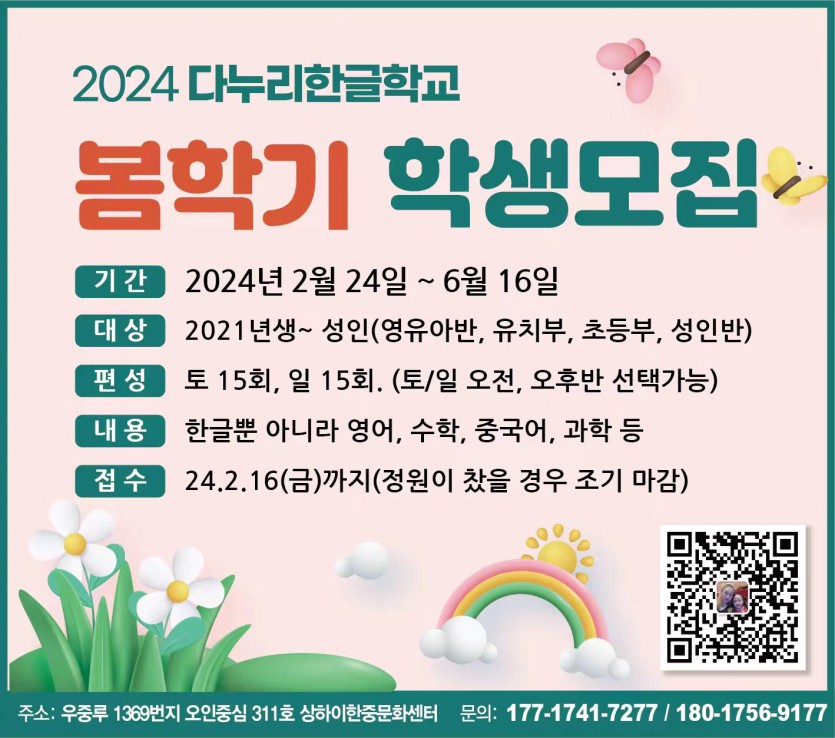 *다누리 한글학교 봄학기 모집요강