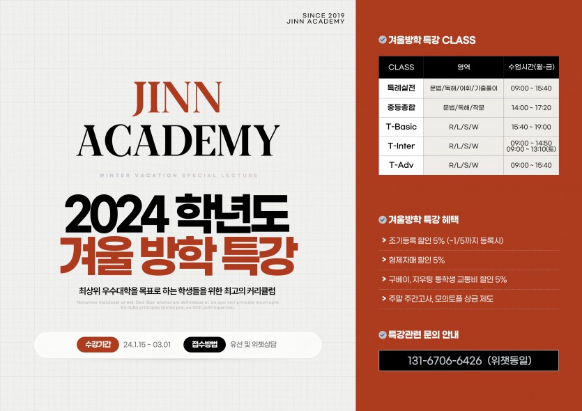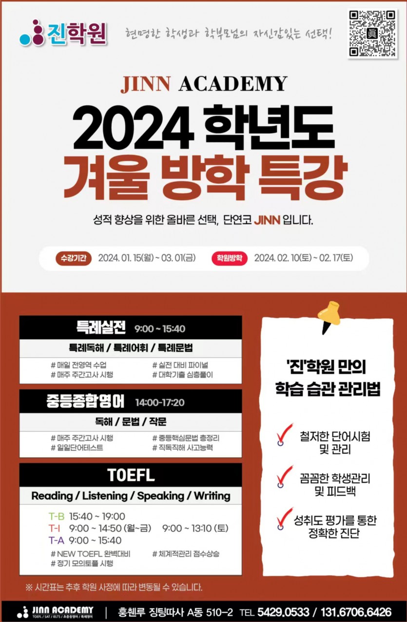 진학원 2024년 겨울방학 특강 페이지 정보 작성자 한국맘 댓글 0건 조회 3,503회 작성일 24-01-04 10:45 목록 본문 페이스북 공유 트위터 공유 진학원 2024년 겨울방학 특강 추천1 댓글 0 댓글목록 등록된 댓글이 없습니다.