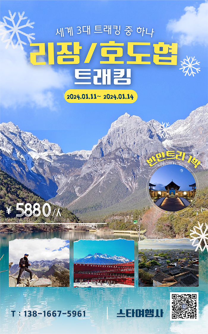 국내 윈난 리장/호도협 트레킹/ 옥룡설산/여강고성 3박4일 관광